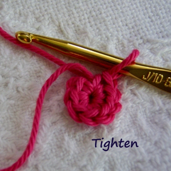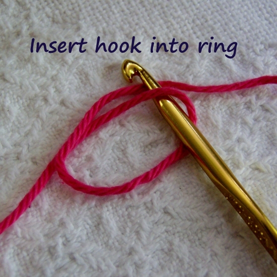 1)Create ring and position with working yarn on top.