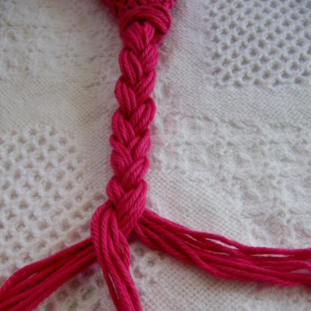 Tip-When I complete the earflap, I leave a long tail and rather than work the ends in, I work it into the braid.  Two less ends to work in!
