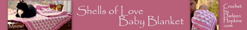 Shells of Love Baby Blanket Crochet Pattern modeled by my kitten 🙂